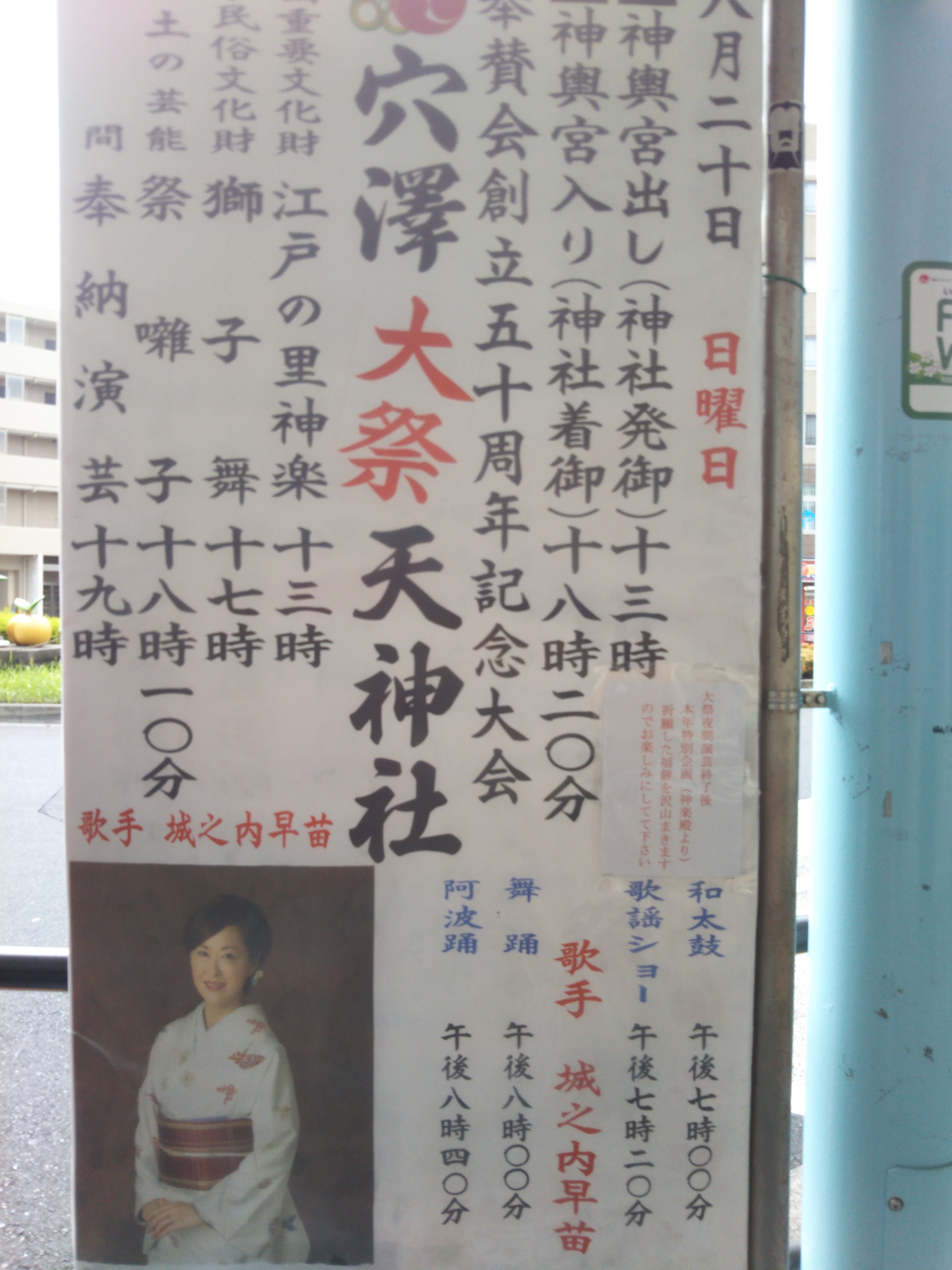 JR矢野口駅近くのとてもとても由緒ある神社(創建紀元前423年!!)「穴澤天神社」様の大祭の賑やかしに呼んでいただきました。